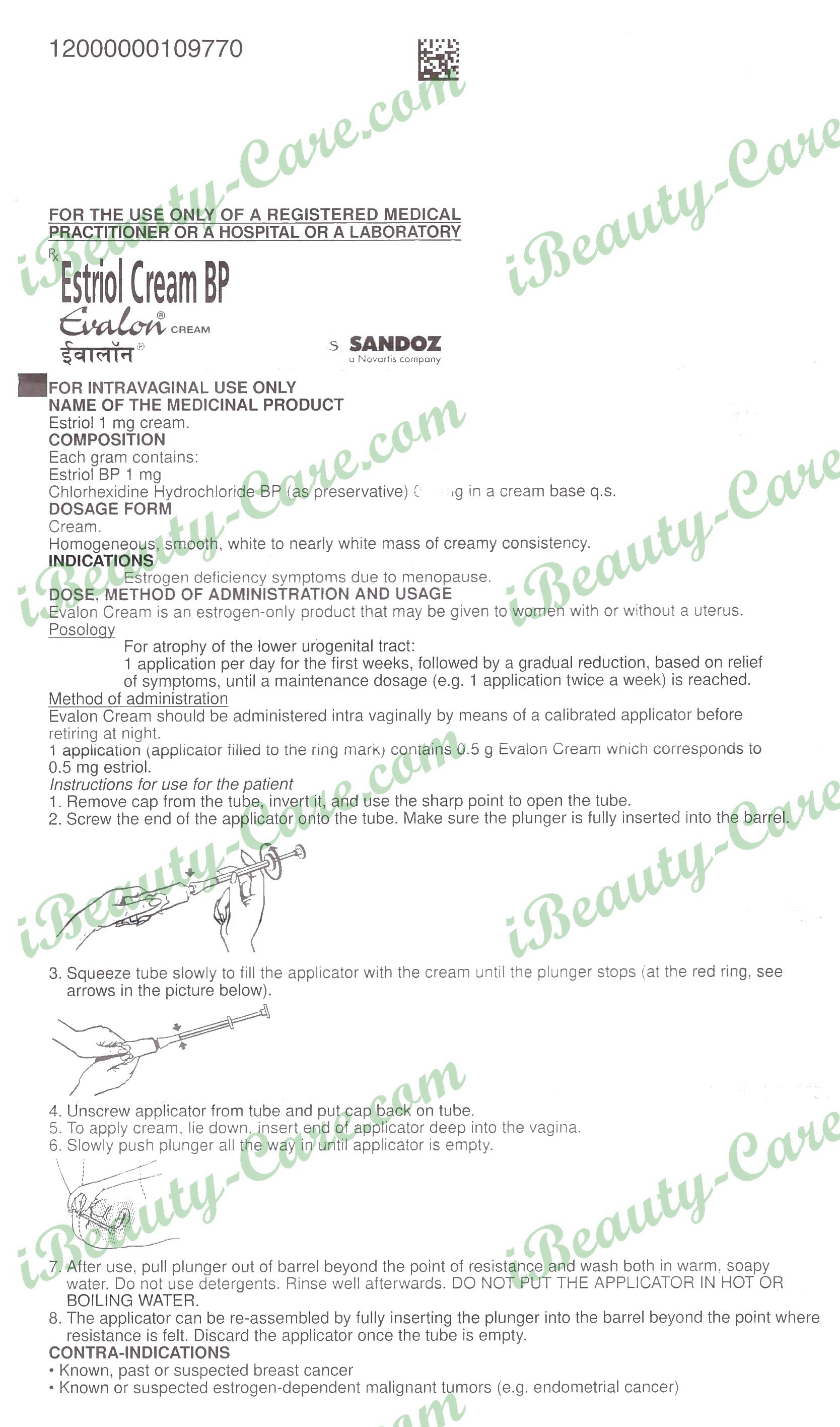 | Apply Estriol cream intravaginally using the applicator provided. | It is recommended to use Estriol cream once daily before bedtime. | One application contains 0.5mg of Evalon cream equivalent to 0.5mg Estriol. | One pack of 15g is suitable for 30 applications. Evalon cream is intended for the short-term treatment. | After the first week, your doctor may recommend to use cream once or twice weekly depending on the result of the first week of treatment. |