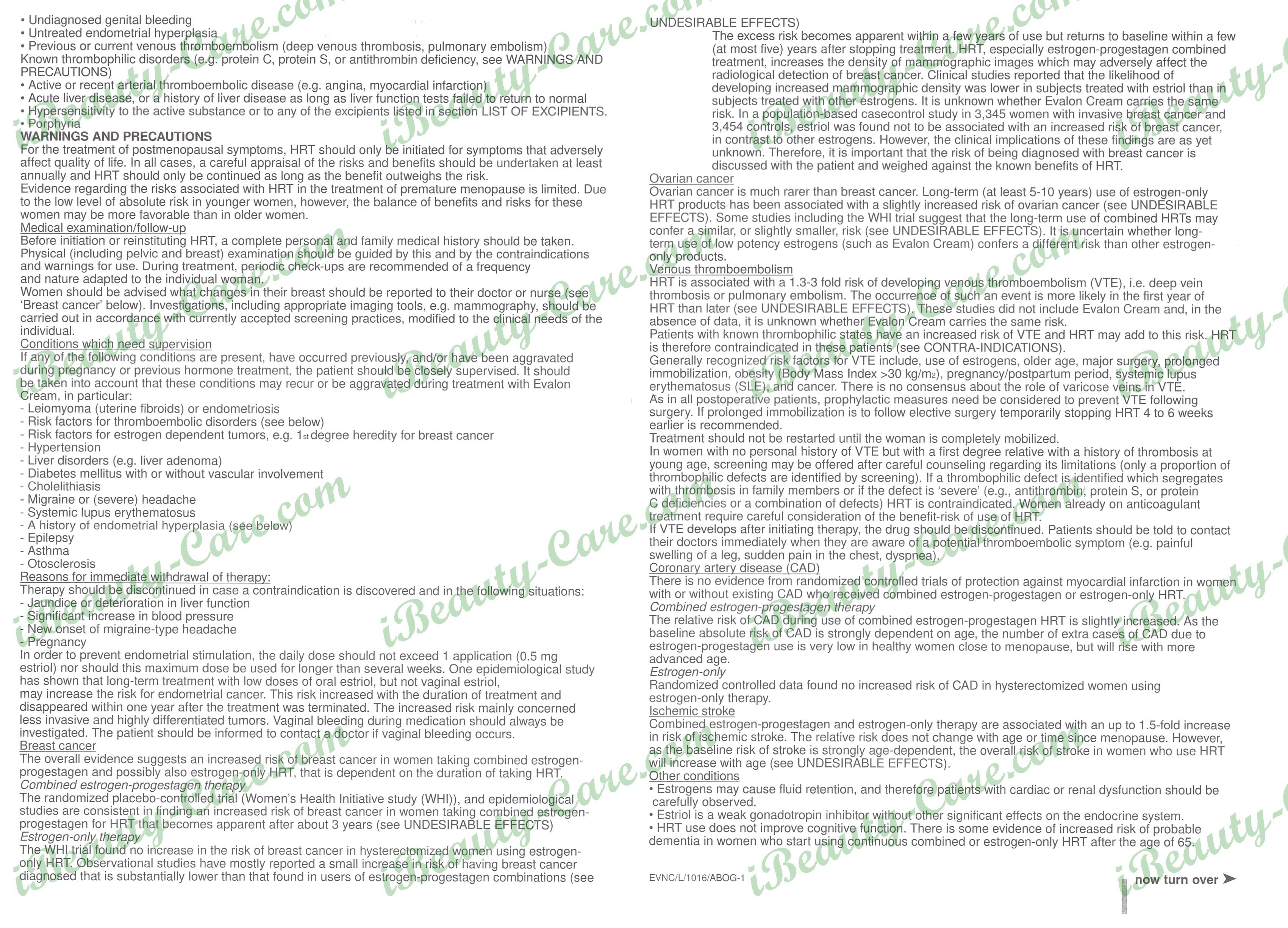 HRT is associated with a 1.3-3-fold risk of developing venous thromboembolism (VTE), i.e. deep vein thrombosis or pulmonary embolism. The occurrence of such an event is more likely in the first year of HRT than later (see UNDESIRABLE EFFECTS). These studies did not include Evalon Cream and, in the absence of data, it is unknown whether Evalon Cream carries the same risk.