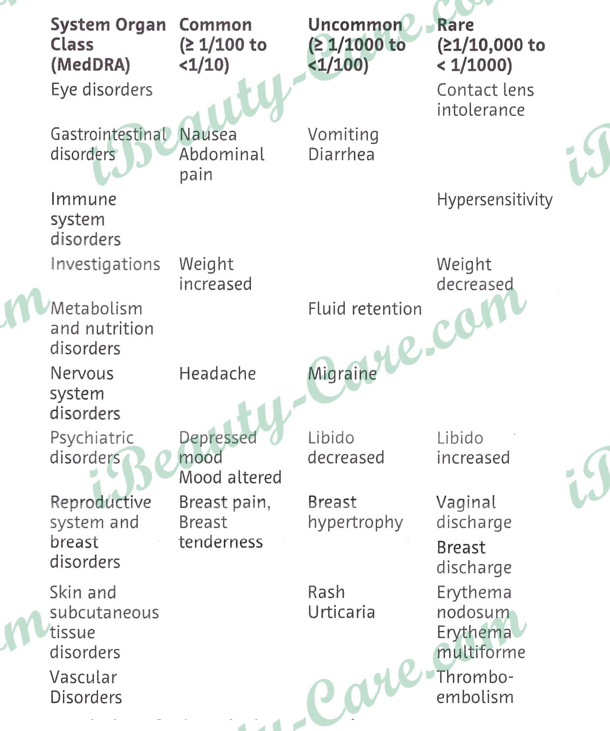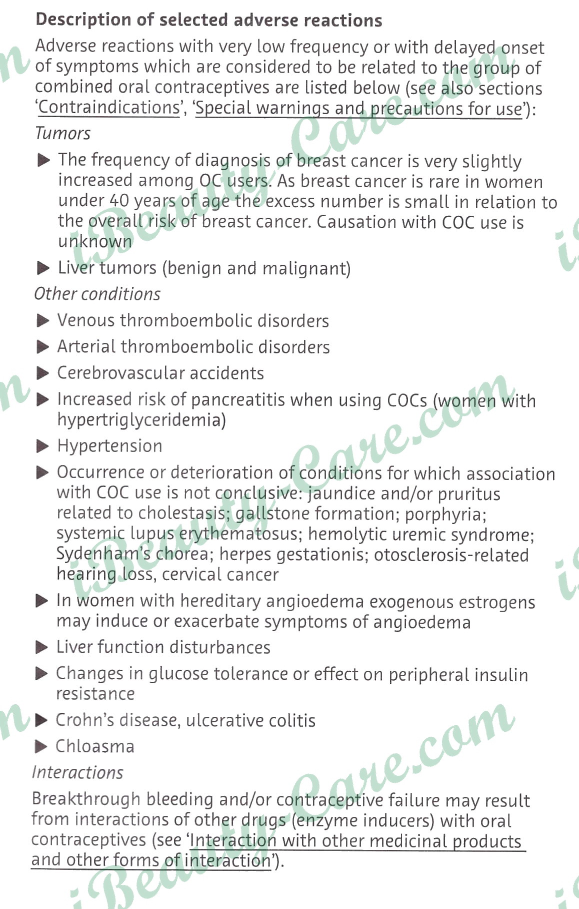 Adverse reactions with very low frequency or with delayed onset of symptoms which are considered to be related to the group of combined oral contraceptives are listed below (see also sections ‘Contraindications’, ‘Special warnings and precautions for use’):